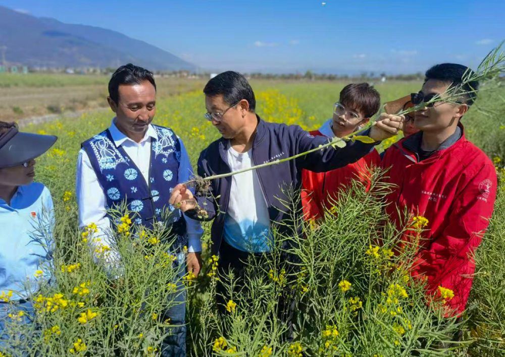 驻扎古生村科技小院的高校师生前往试验田,监测小春作物生长数据,以助力减轻洱海农业面源污染负荷;