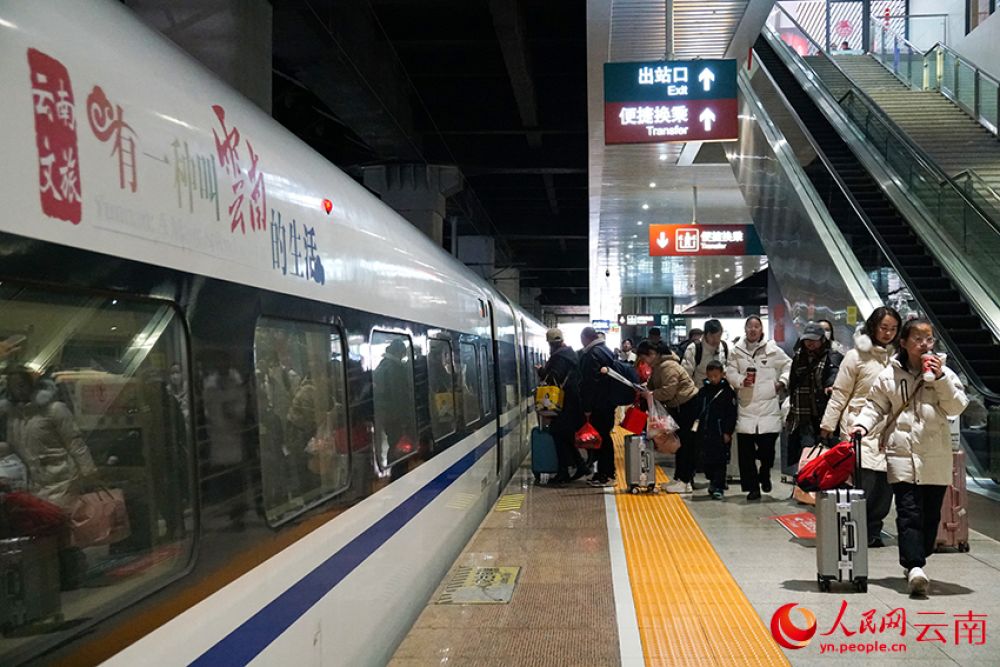 旅客在昆明南站登车。人民网记者 李发兴摄