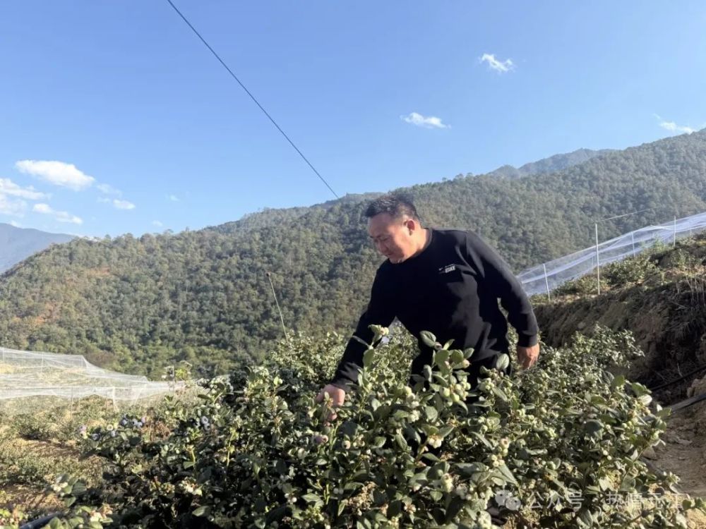 走进龙潭乡邓耳村委会邓耳下寨的蓝莓基地,一株株蓝莓枝上挂满了青蓝色的果子,果实颗粒饱满、色泽纯正,令人垂涎欲滴。