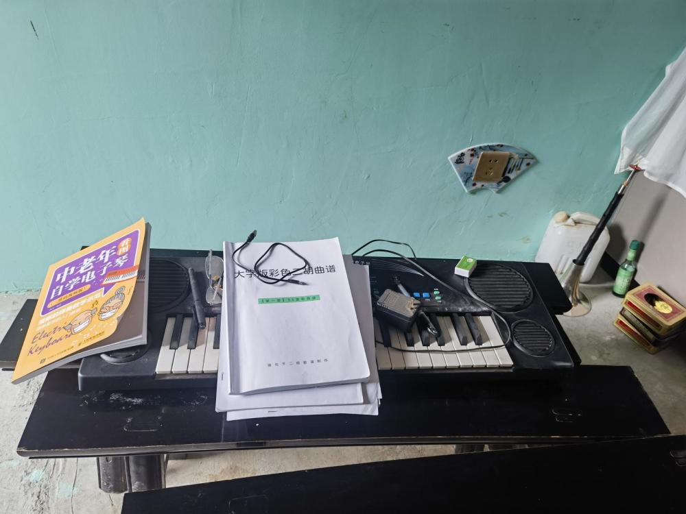 空闲的时候,樊治顺喜欢拉二胡。“我喜欢音乐,不仅是因为它好听,更因为它可以排解我心中的烦恼。”谈起二胡,樊治顺脸上立马露出了笑容。在他家墙上,贴着二胡指法,便于日常学习所用,板凳上还放着一把电子琴和一本自学书籍。