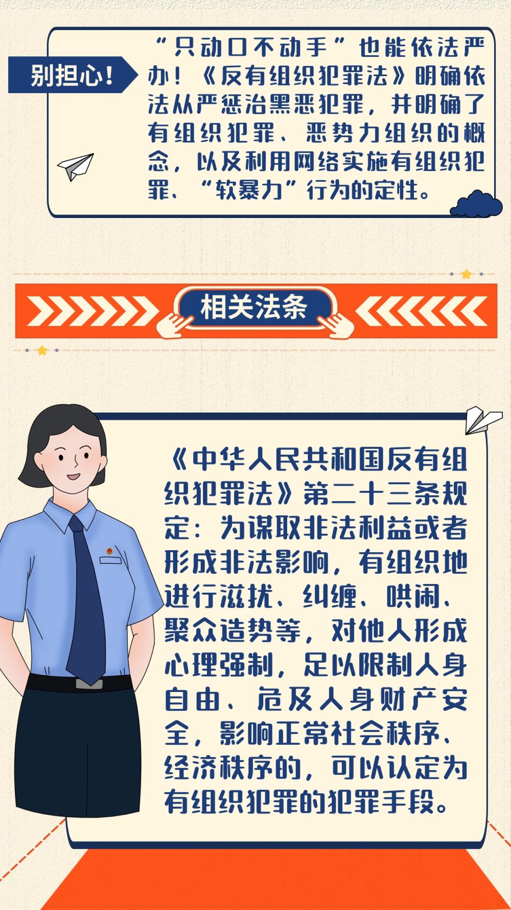 《中华人民共和国反有组织犯罪法》自2022年5月1日起施行,今年已经两周岁啦!它是我国第一部专门系统规范反有组织犯罪工作的法律,是常态化开展扫黑除恶斗争的“法宝”和“利剑”。