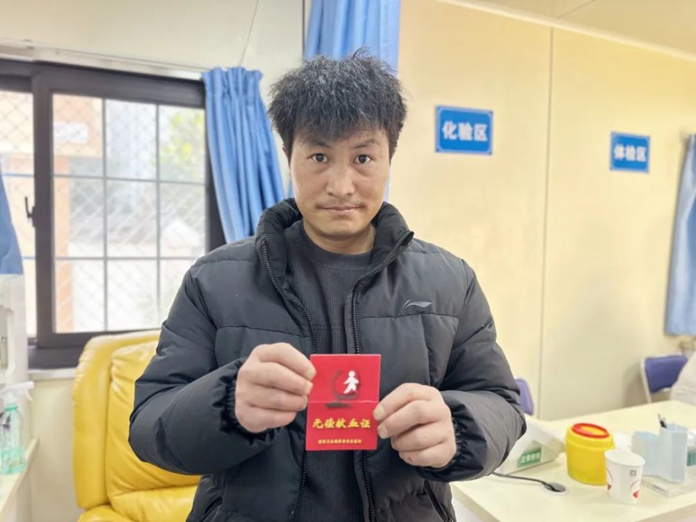 市民杨先生在献血后获得无偿献血证。(丽江融媒记者 廖浚宏 摄)