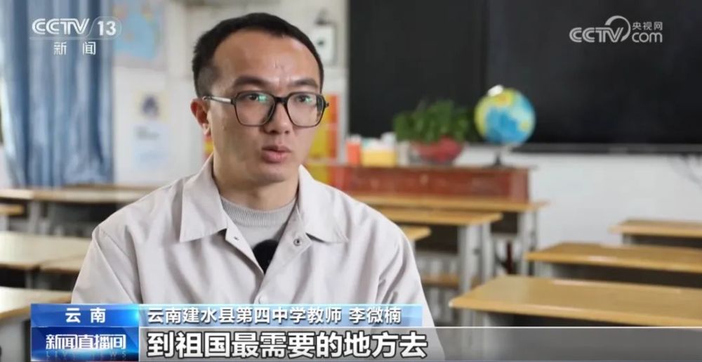 云南省建水县第四中学教师 李微楠:我研究生毕业的那一年,国家大力号召大学生到基层去进行支教,正值这个毕业生的求职季,我看到其中一个口号特别触动,是“到西部去,到基层去,到祖国最需要的地方去”。
