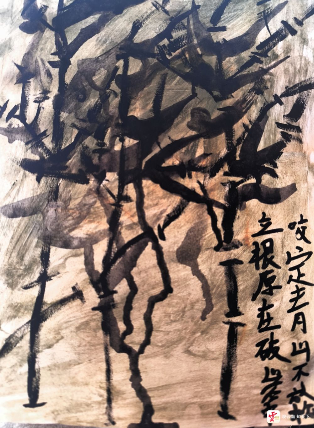 浩浩画的是水墨竹画,以淡灰色为背景,黑墨点缀其间,线条或粗或细,或浓或淡,没有多么高超的技法,但无论笔直、弯曲或倾斜的竹子都是固执地向上、破岩而出,右下角的题字还未脱离稚气:咬定青山不放松,立根原在破岩中。一眼望去,“定”字写得最大,牢牢地,像钉在了画上……