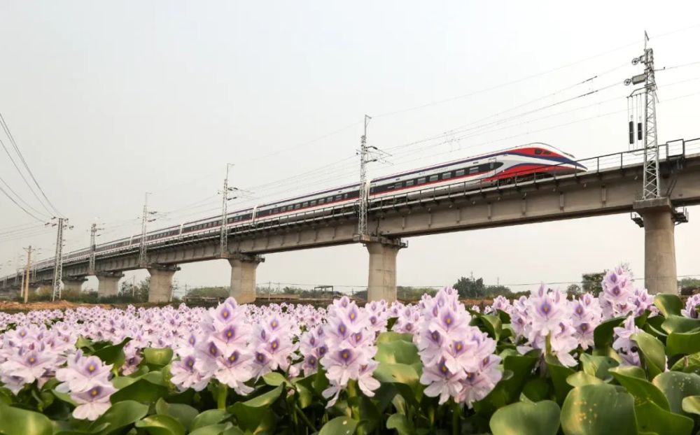 从老挝万象站驶出的D888次“澜沧号”列车行驶在西双版纳州境内的中老铁路橄榄坝特大桥上 新华社记者 单宇琦 摄