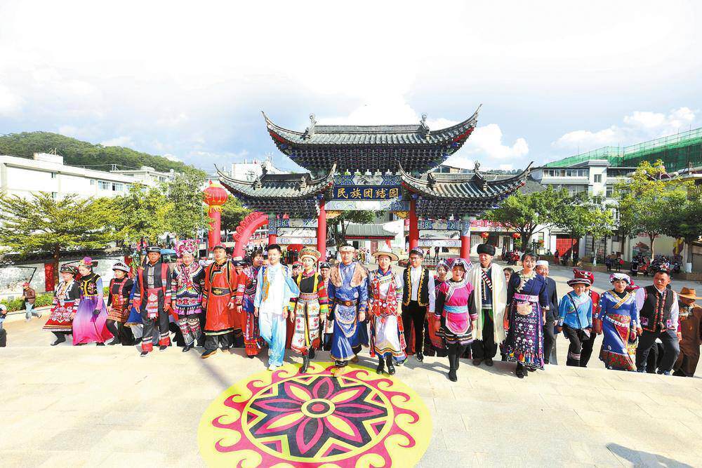 56个民族代表欢聚普洱民族团结园 陈飞 摄