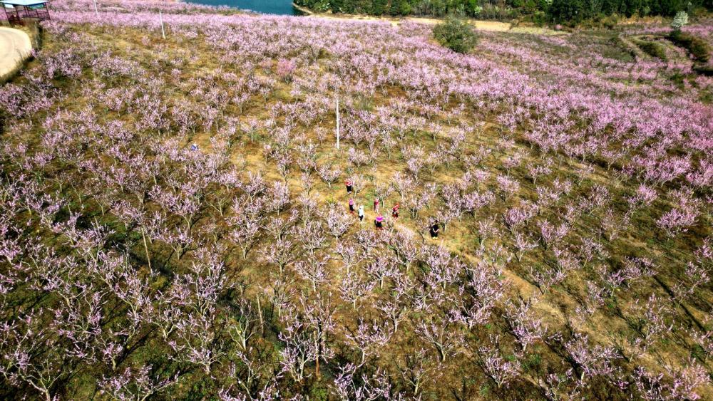 三月春光正好,在新化乡新化社区瓦白果小组,百亩桃花迎春绽放,粉粉嫩嫩的花瓣挂满枝头,微风拂过,仿佛下起浪漫花雨,前来探春的游客在这里邂逅独属于春天的诗意与温柔,沉浸在这浪漫的春日盛景之中。