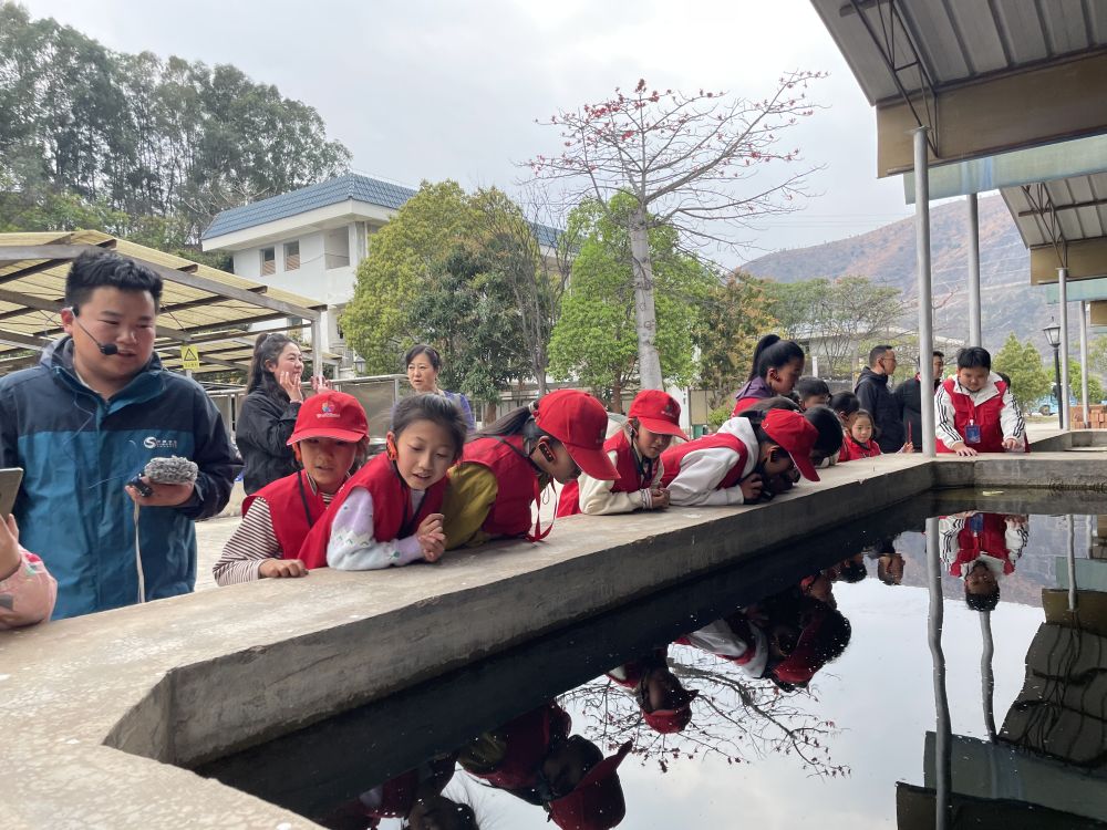 ▲丽江融媒小记者参观观音岩水电站的增殖养殖区育苗池。(杨四见 拍摄)