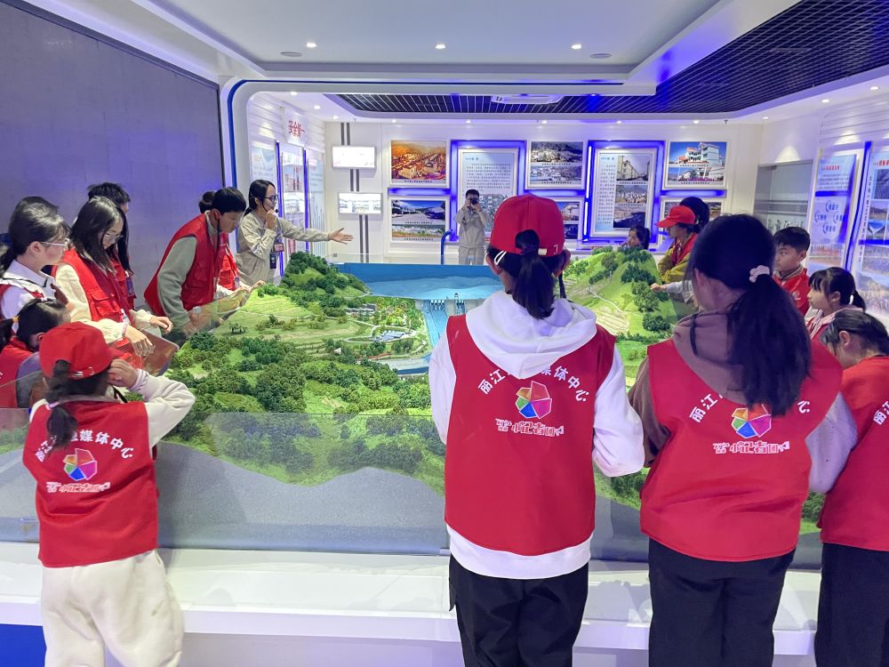 ▲丽江融媒小记者通过库区沙盘了解观音岩水电站。(杨四见 拍摄)
