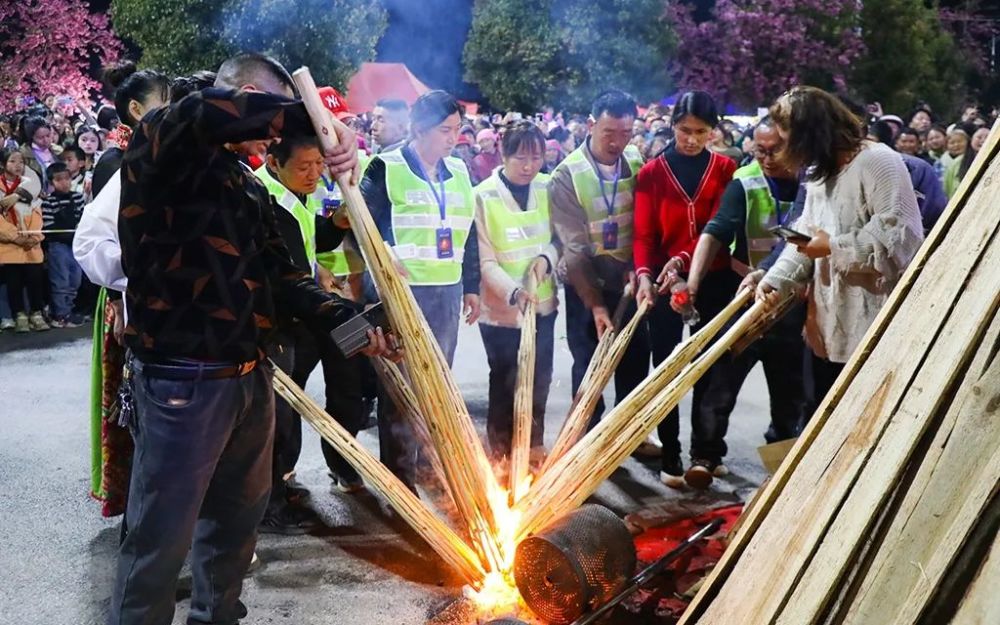 夜幕降临,打铁花表演将活动推向高潮。铁水腾空,瞬间绽放成万千星花,如天女散花般绚丽夺目;风火轮、火壶表演同样令人惊叹,艺人们娴熟操控火焰,似火中精灵翩翩起舞,引得观众阵阵惊呼。紧接着,熊熊篝火燃起,大家手拉手围绕篝火起舞,驱散春夜凉意,陌生的面庞在火光映照下洋溢着同样的欢乐,彼此的距离也在这热情的氛围中拉近。