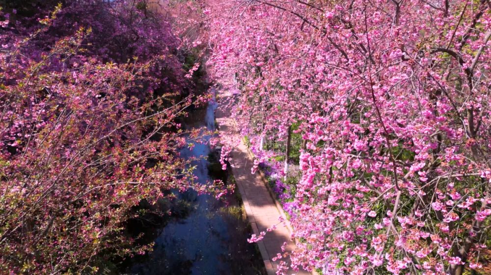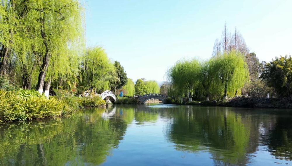 在山环水绕的盘江之源丰泽源,赏海菜花灵动柔美,樱花绚烂梦幻,就这样步入莫奈的油画世界。