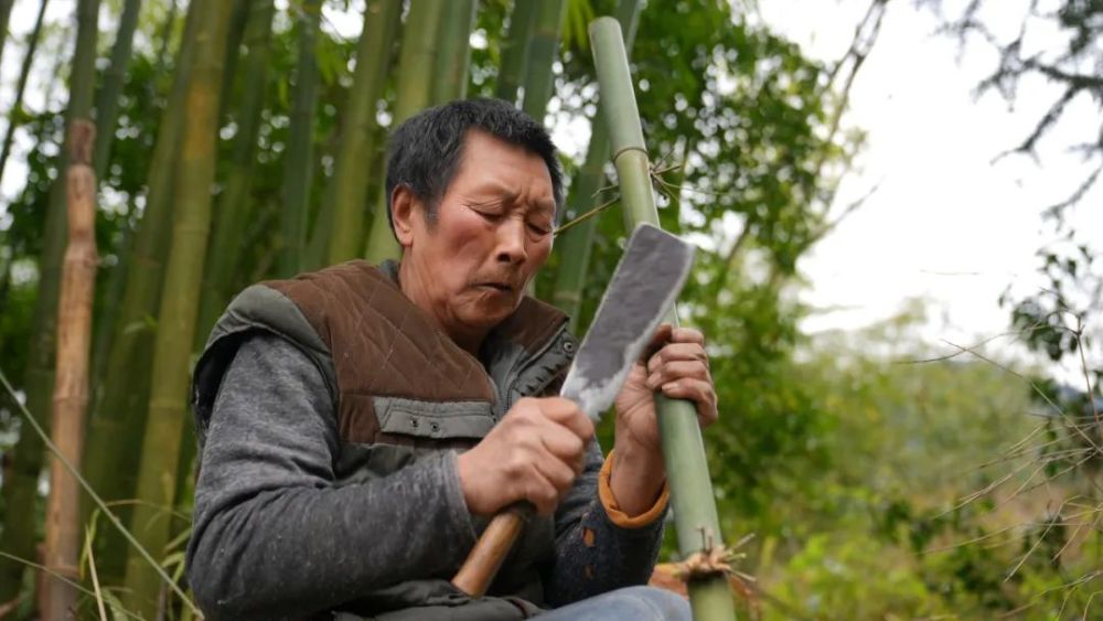 赶集结束后,我们跟随袁登友来到他家,院落随处可见与竹子相关的“边角料”。稍作休息,他便带我们去竹林,一路上,他拄着拐,背着袋子,虽然单腿,但走得不慢。“你一个人砍竹子,如何拉回家?制作会不会很麻烦?”记者问到。“我们残疾人有残疾人的办法,不能全靠政府,专门指望政府,自己都不好意思。”手里正削着竹子的袁登友笑着说。