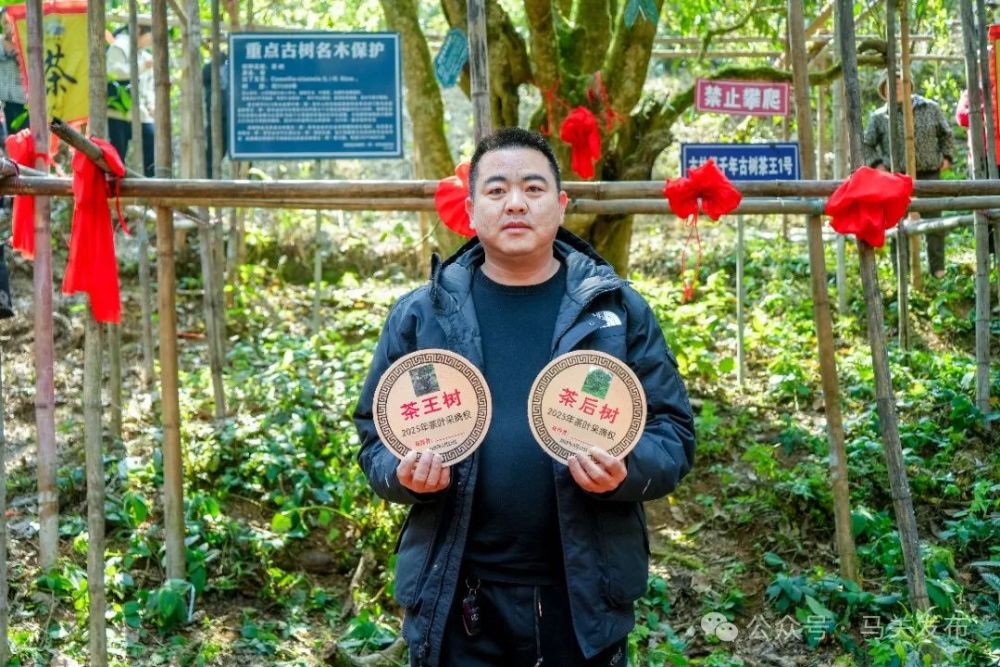 在庄重的古法采茶仪式中,茶农身着传统民族服饰,登上古茶树采摘春茶嫩芽,展现茶乡非遗技艺。随后举行的2025年“茶王”“茶后”古树茶采摘权竞拍环节将活动推向高潮,经过多轮竞价,“茶王”“茶后”的春茶采摘权以2.6万元高价成交。竞拍企业代表表示:“古林箐古树茶承载着历史与自然的馈赠,我们将通过精细化加工,让这片‘绿叶’成为乡村振兴的‘金叶’。”