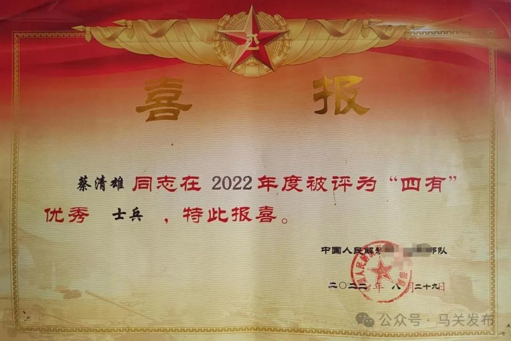 早在2020年,哥哥蔡清雄就已毅然入伍。在部队服役期间,他凭借坚定的信念、顽强的意志和出色的军事素养,荣获了“四有”优秀士兵称号,并晋升为军士。当喜报送到家中时,全家人欢腾不已,为哥哥感到无比自豪和骄傲。哥哥在部队的进步和荣誉也深深激励了蔡清豪。哥哥回来探亲或者打电话时,常常要和弟弟蔡清豪聊上一段时间,他介绍自己在部队的生活和训练情况,“部队是个大熔炉,能把你锻炼成真正的男子汉。在这里,你会学会坚持、学会勇敢,更重要的是,你会找到一群志同道合的兄弟,一起为国家的和平稳定贡献自己的力量。希望你毕业后也能加入部队,和哥哥一起并肩作战!”哥哥蔡清雄说。