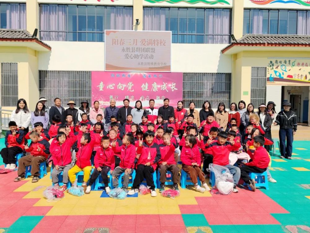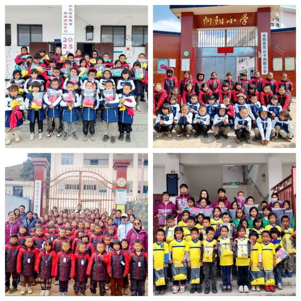 捐赠仪式现场,孩子们穿上新衣服,脸上绽放灿烂的笑容。永胜县特殊教育学校张维平校长在致谢中说:“这些物资和关爱,对特殊儿童来说是莫大的鼓励与关怀,也为学校的教育教学工作提供了有力支持。” 六德乡中心学校校长罗金明向爱心团队敬赠锦旗,他说:“这份关爱不仅是物质上的支持,更是精神上的鼓舞,将激励同学们努力进取。”永胜民族中学、东山乡中心学校校长分别代表各校师生对爱心人士表示衷心感谢,并承诺会妥善分配和使用这些物资,让每一份爱心都能传递到学生和教师身上。