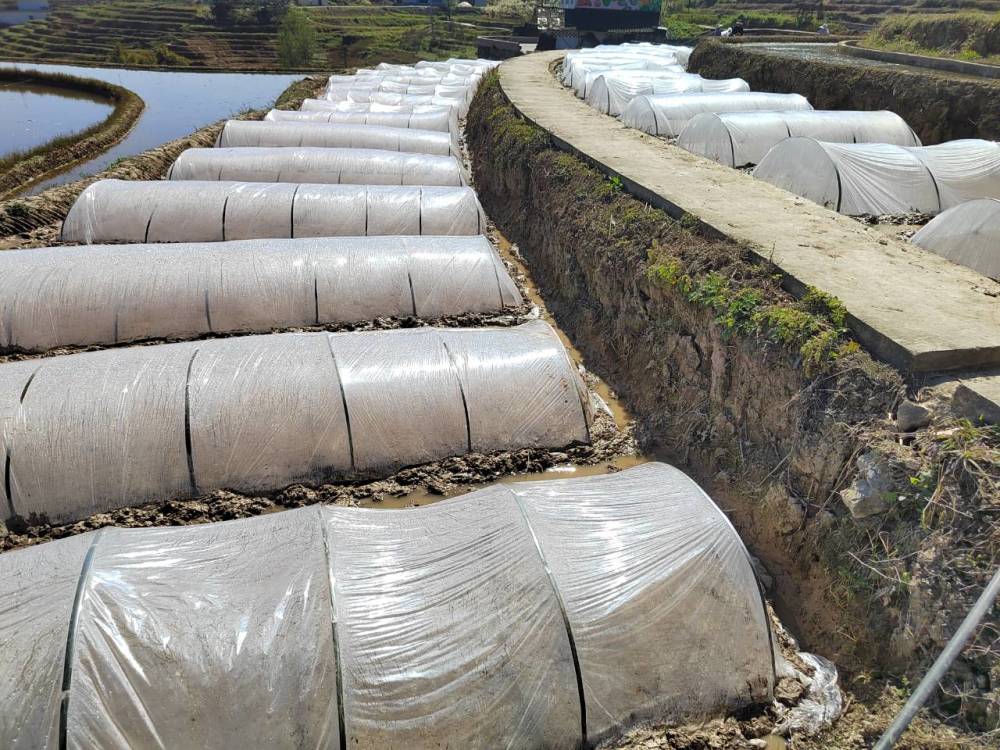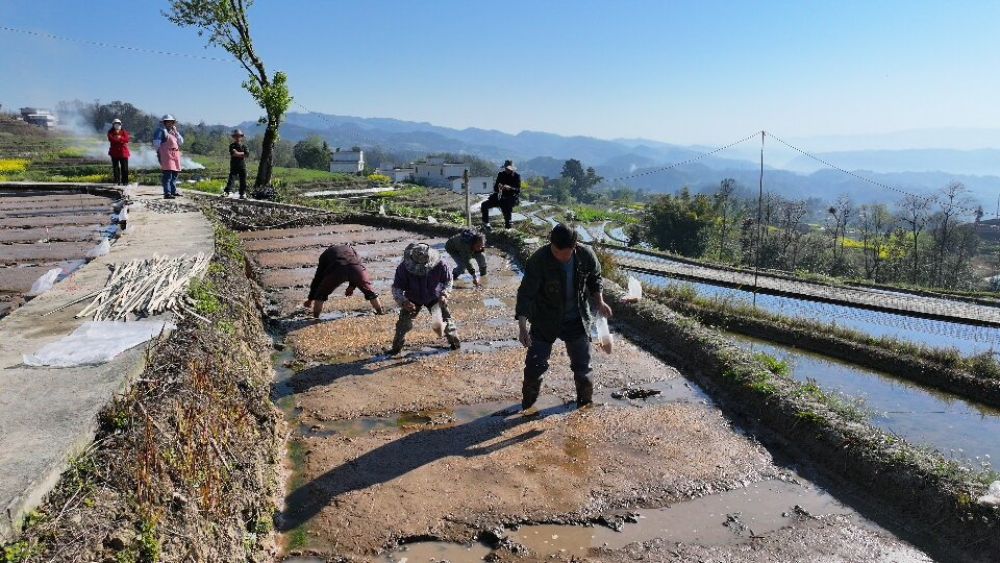 3月25日,昭通市中低海拔地区水稻品种展示项目在水富市永安村火热开展。一块块平整好的秧田分成了门板大小块状,不同品种的水稻种子分别放置在田坎上,等待播种。