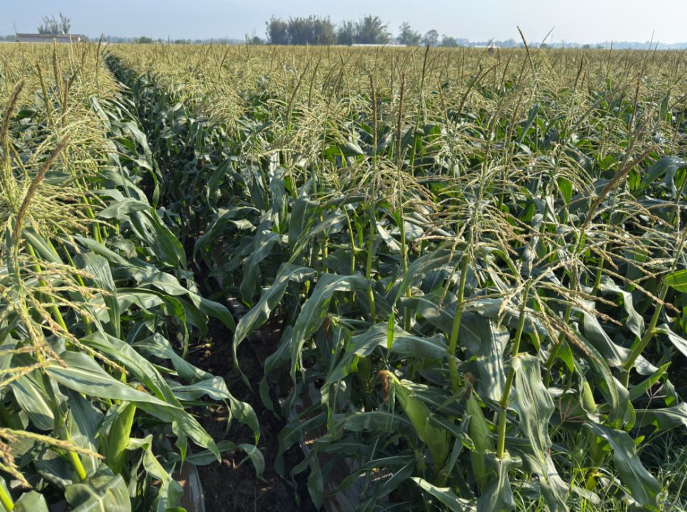 “传统四行种植模式存在排水不畅、通风不良等问题,特别是10月种植期遇雨容易造成蹲苗。”州农技推广中心郑宇峰研究员介绍,此次创新的宽窄双行密植模式,通过三项关键技术突破实现增产:选用耐密植高甜度“零一”审定玉米品种,每亩种植密度提升至4760株;采用起垄双行种植技术,配套精准水肥管理,有效规避渍害风险;创新农机农艺融合路径,将传统种植习惯与现代技术有机结合。