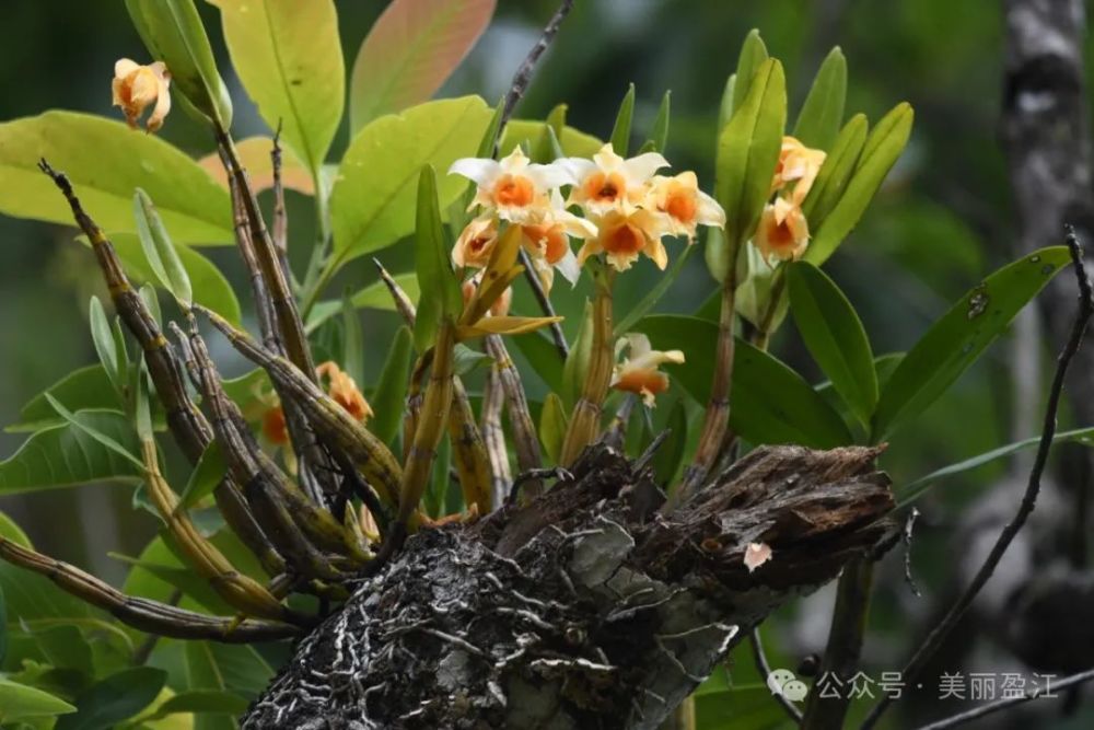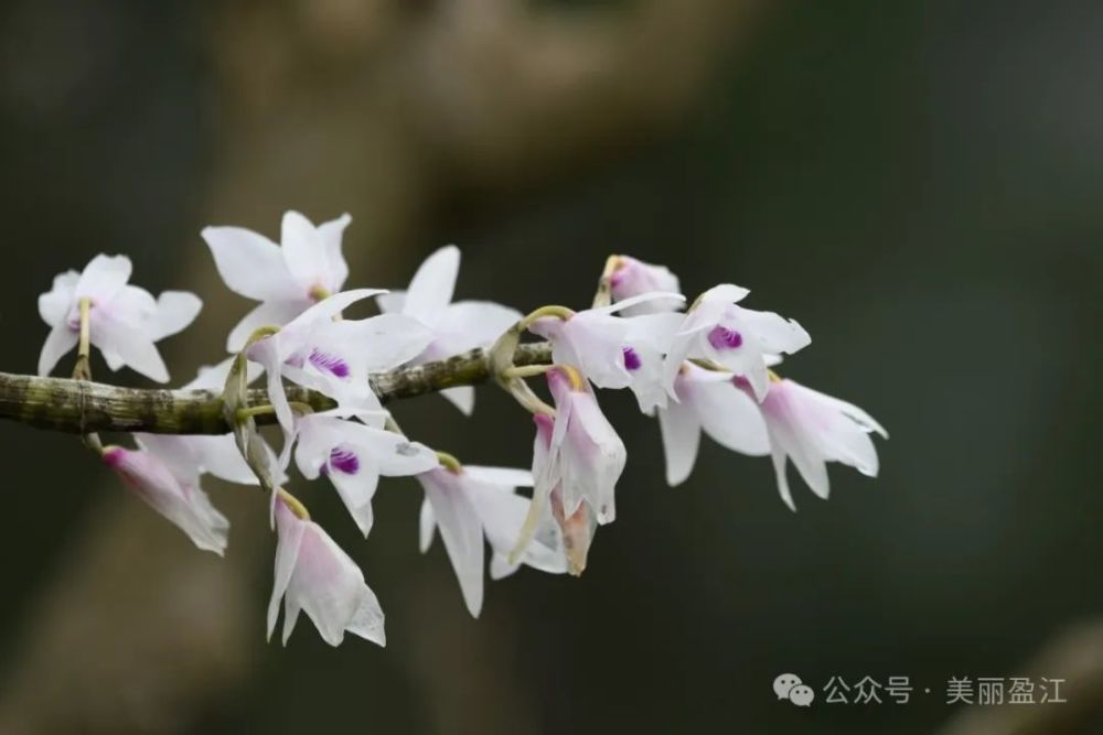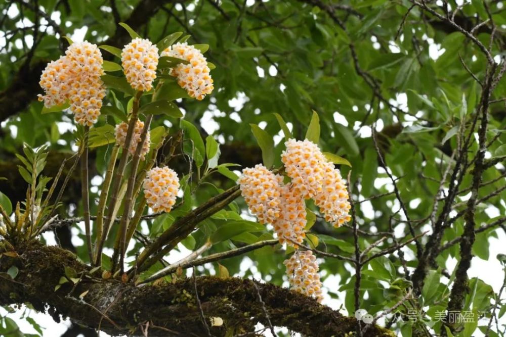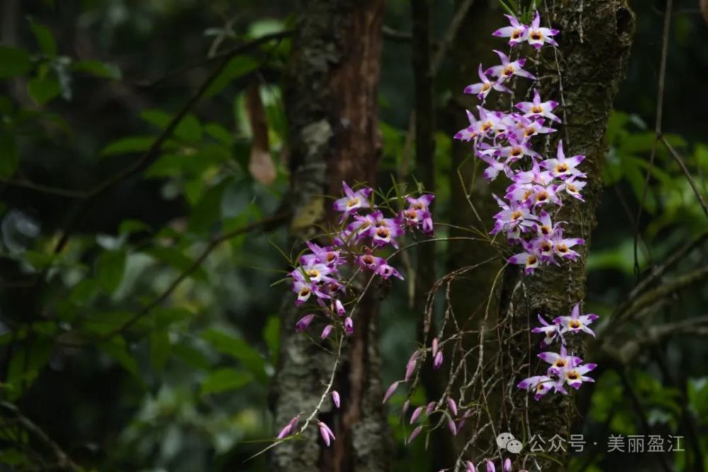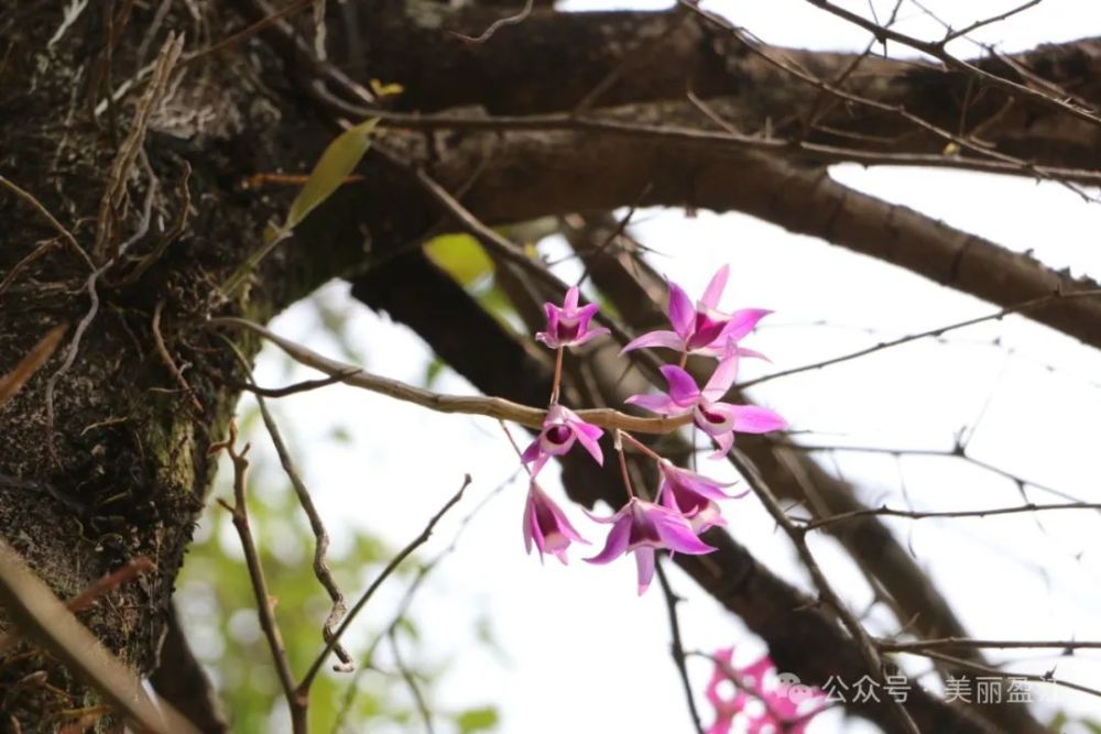 独蒜兰身披金黄华裳,星星点点地散布在山林间,宛如夜幕中闪烁的繁星,熠熠生辉。石斛花则如同灵动的蝴蝶,在微风轻拂下,振翅欲飞,姿态翩跹。它们花色斑斓,有的花瓣轻盈舒展,似在诉说着春日的柔情;有的俏皮卷曲,仿佛在与春风嬉戏玩闹,于微风中摇曳生姿,尽显绰约之态。