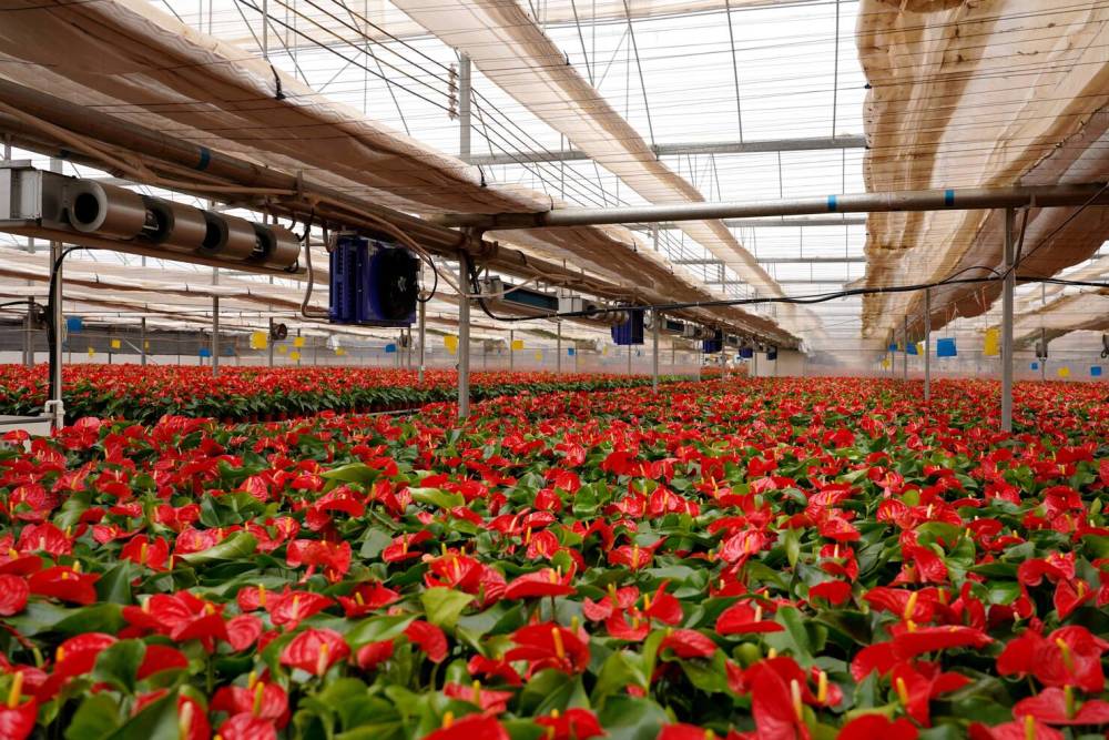 得益于得天独厚的自然条件,陆良培育出的红掌株型饱满,花朵均匀鲜艳,花期也更长。这些优势让陆良花卉在市场上极具竞争力。除了气候优势,科技也发挥着不可替代的作用。过去,鲜花种植受天气影响,一场倒春寒就可能导致重大损失。然而,在科技种植的助力下,鲜花拥有了量身定制的生长环境。