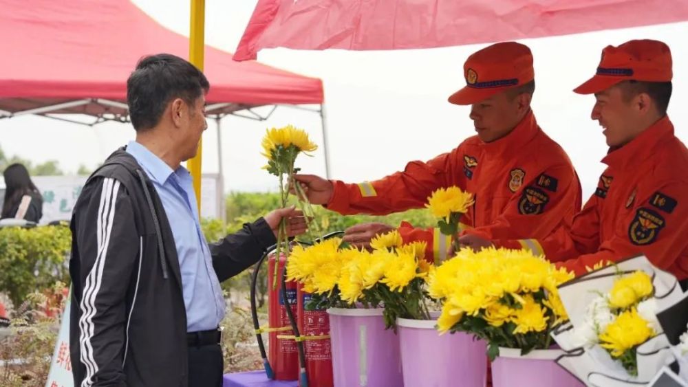 △云南省森林消防总队普洱支队设置鲜花发放点,推广文明绿色的祭扫方式。