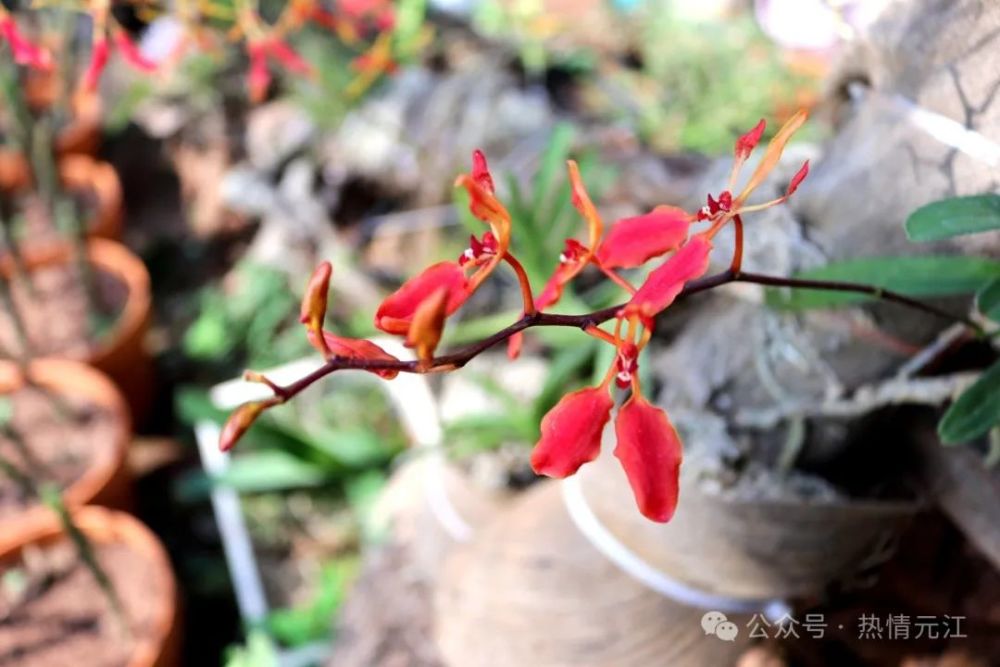 据了解,云南火焰兰因花色鲜红如火焰而得名,是我国特有的珍稀兰花品种,在中国仅分布于云南元江,为国家二级重点保护野生植物,被世界自然保护联盟列为极危物种。因其分布地狭窄、野生资源稀少、种群繁衍困难及人为滥采等原因,野生种群濒临灭绝。