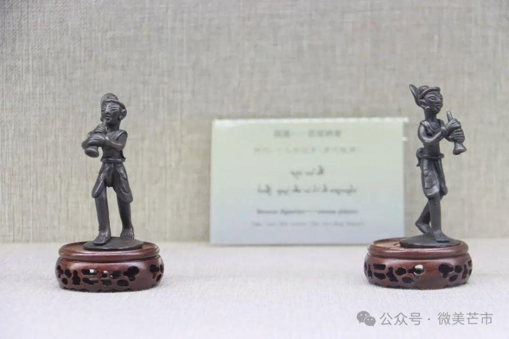 除此之外,“傣族铜器展”展区还有一套傣族铜俑,有打响盏者、执刀武士,还有携水瓶侍女、捧花侍女、执鹦鹉侍女、执扇侍女、舞者……他们形态各异,栩栩如生。每个铜俑的服饰、面部表情都刻画得细致入微,展现出傣族精湛的铜器锻造技艺。