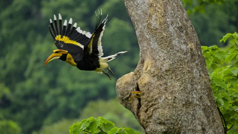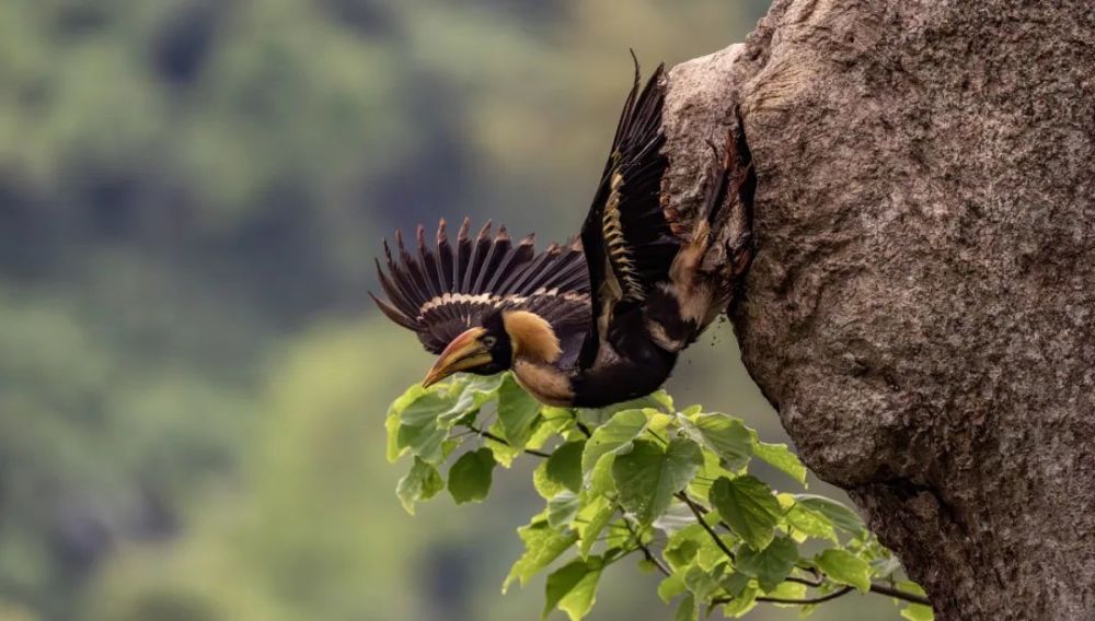 飞向雨林开启新生活的犀鸟宝宝。 朱边勇 摄