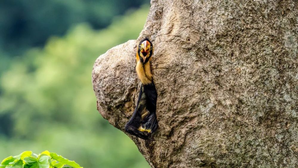 6月14日,记者和生态摄影师在云南省德宏傣族景颇族自治州盈江县“中国犀鸟谷”拍摄到国家一级重点保护野生动物——双角犀鸟幼鸟出巢的珍贵影像。这是我国境内第五次记录到该物种出巢。