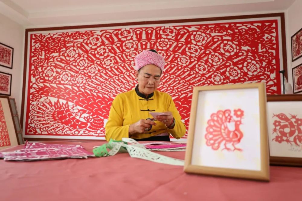 对邵梅罕而言,剪纸最初的启蒙是奶奶剪制“董”和“喳”的专注身影。“奶奶剪‘董’的时候,我总趴在旁边看。”年幼的她攥着树枝,在土地上虔诚临摹那些流转的线条,当稚拙的小手帮奶奶完成第一幅作品,阳光穿透纸纹投下细碎光斑时,那瞬间的斑斓已悄然烙印于心。