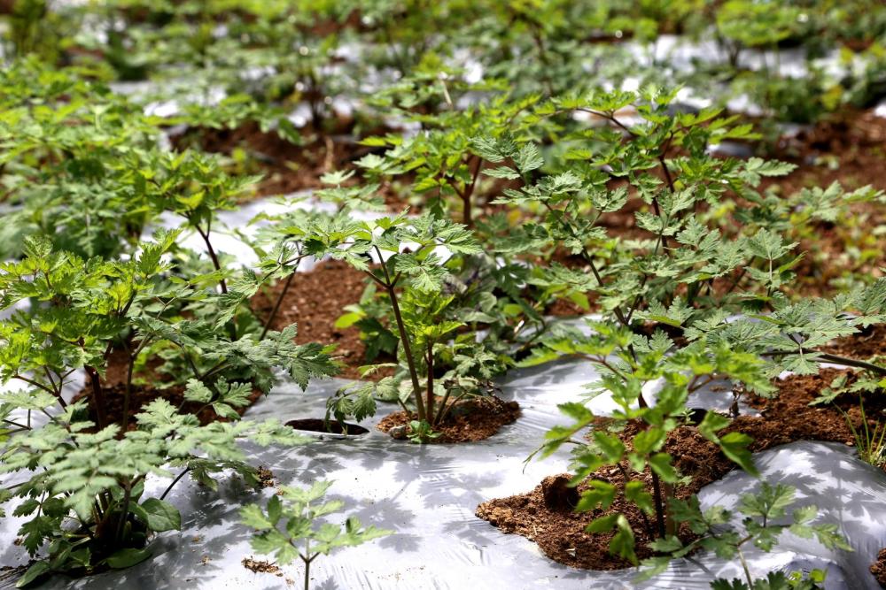 据了解,该基地目前种植木香、当归、党参等中药材近200亩。其中木香丰收在即;当归处于生长期,株苗健壮。"用工高峰期每天有二十五六人,工钱按天算,一天100元。做得久的村民,一年能拿一万多。"基地负责人刘会介绍道。