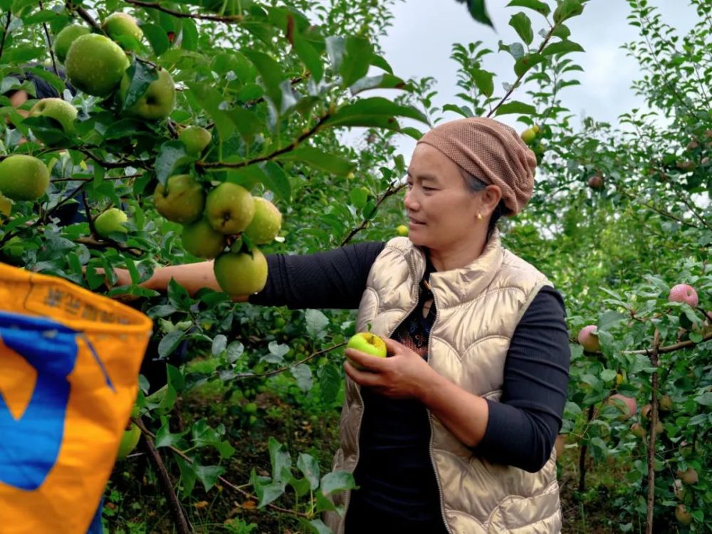 8月的雨丝淅淅沥沥,将果树枝叶洗得油亮,也催得青红相间的苹果挂满枝头。雨刚停,新营盘乡毛家乡村的沙长发夫妇就挽着沾满泥浆的裤脚钻进果园,用杆子轻轻撑起被果实压弯的枝丫。望着满枝硕果,两人眼角眉梢都是藏不住的喜悦。