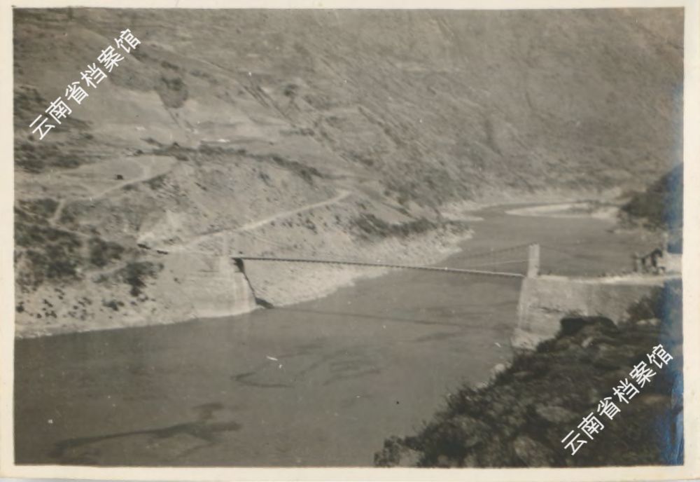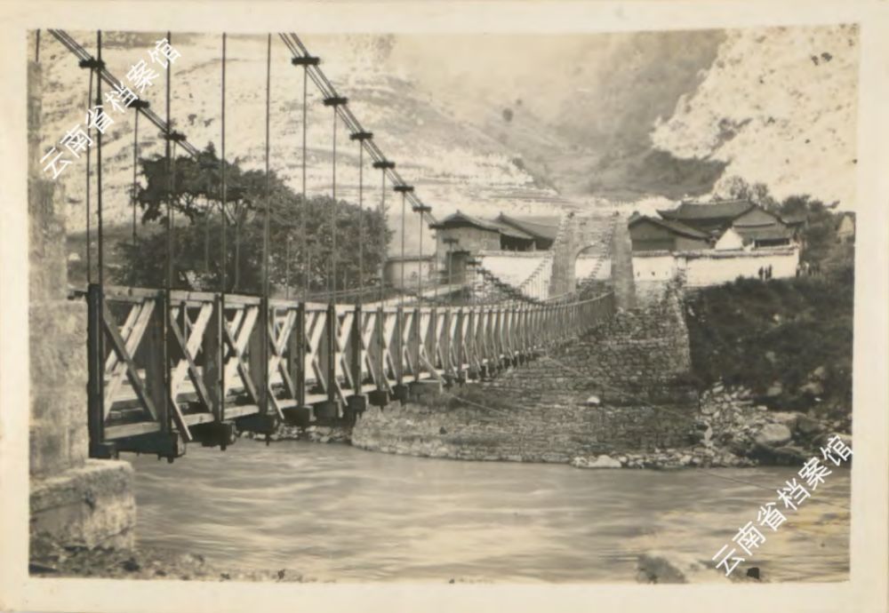 图为悬索式功果桥竣工后的侧面(1938年9月)