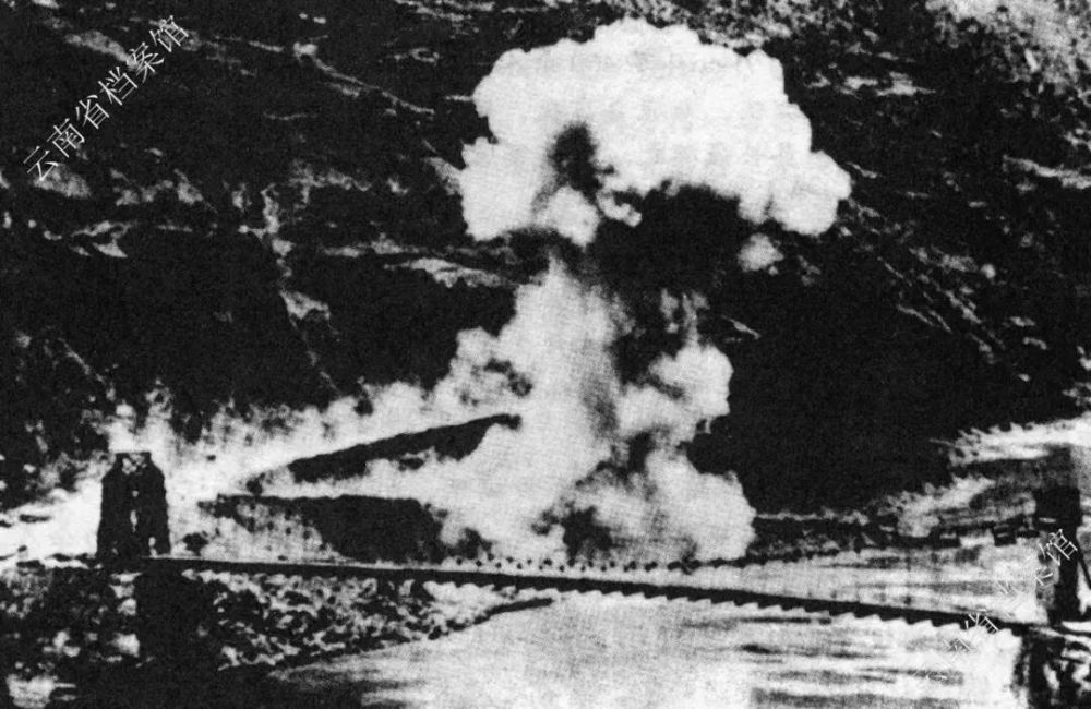 图为1941年,日军飞机轰炸滇缅公路交通咽喉惠通桥