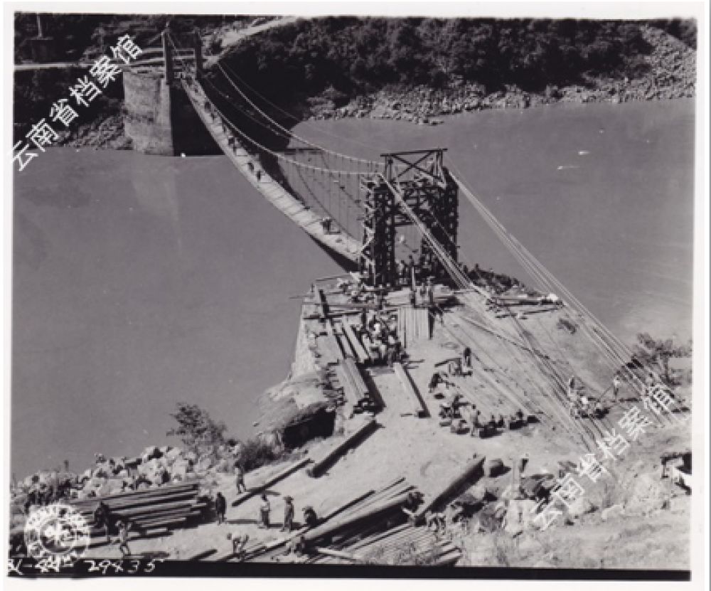 被日军炸毁后,1945年1月,原址架起云南首座双排单层贝雷式钢架桥,再次承担起物资运输重任。