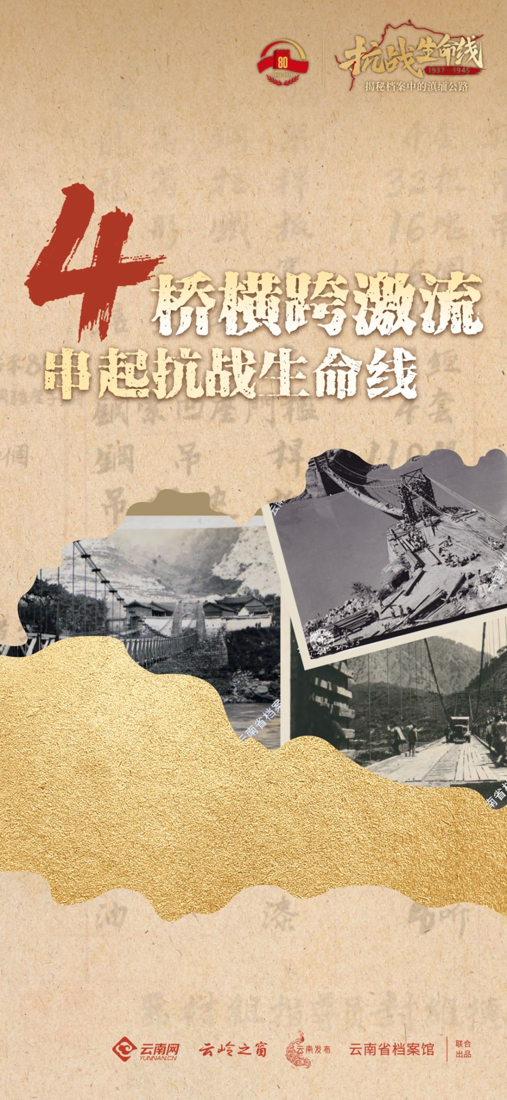 今天,我们聚焦滇缅公路上至关重要的4座桥梁。它们是抗战物资输送的关键要道,更是炸不断、摧不垮的钢铁脊梁。