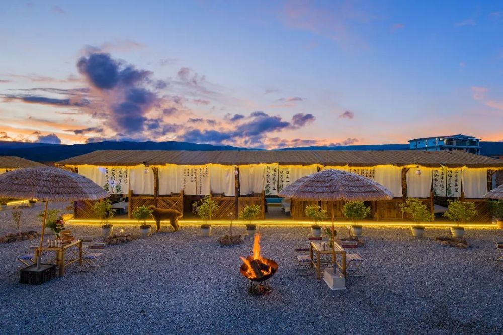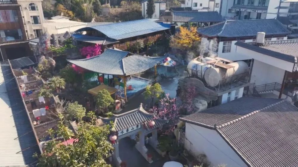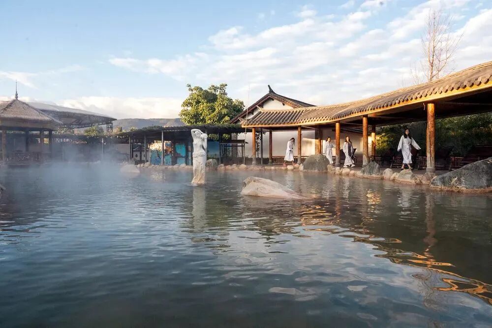 老人们一摆起古,便是一种让人深信不疑的阵势。传说是否属实至今无人考证,但牛街的温泉浴倒是出了名的。房脚往下挖上三五米,滚烫的泉水便喷涌而出。于是镇上的居民便巧用这些天赐的热泉资源,建起了许多澡塘和民宿客栈,一年四季迎接前往小镇度假的八方客人。到了寒冬季节,那些从雪域高原上下来的藏族同胞,喜欢拖家带口一起住进一个温泉客栈,并且自带锣锅炊具,在澡塘边煮着老腊肉,打着酥油茶,一旦泡得娇弱无力,就会钻出水面,豪吃痛饮一番,才又重新泡入泉潭之中。转眼夕阳西下,一天时光即将散尽。享受完温泉之醉的人们,此时皆已一身畅快,便三五成群,在宽敞的露天庭院里,跳起藏族的“锅庄”,和着白族的三弦,热忱地欢歌曼舞,恰恰也是牛街小镇一种恰如其分的和谐之乐。