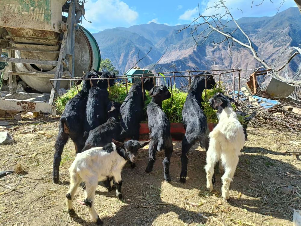 在金江乡普勤村委会普勤一组,养殖户和金海的家中,标准化养殖圈舍宽敞而整齐,排列有序。棚内羊叫声此起彼伏,和金海忙碌于配料、拌料、运料之间,一头头膘肥体壮的山羊吃得正欢。和金海说:“我在家里养了150头羊,近几年羊价稳定,每头均价在1500元左右,每年能有几万元的收入。”羊产业的发展,不仅充实了和金海的钱包,也为金江乡的经济发展注入了活力。