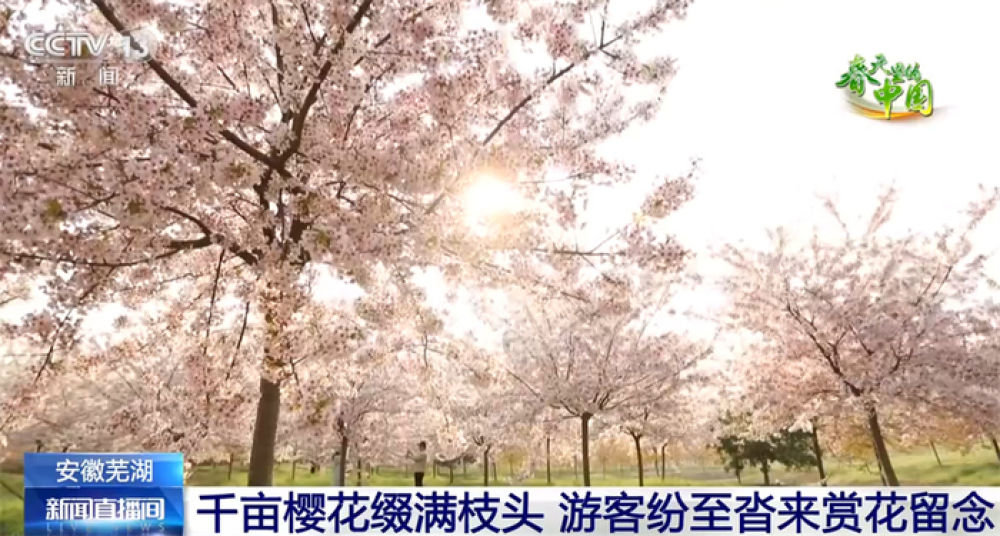 您现在看到的是位于安徽芜湖湾沚镇的千亩樱花园。走进花间,一树粉红、一树洁白,朵朵樱花缀满枝头,蜜蜂也闻香而来在花间飞舞。据了解,这片樱花园共种植了56种樱花,花期可持续到四月底,目前正值最佳观赏期,游客纷至沓来,赏花留念。