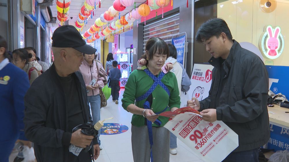9月26日,人保财险永胜支公司工作人员在永胜县永北镇人流集中区域宣传推广惠民保。(丽江融媒体记者 和继鹏 摄)