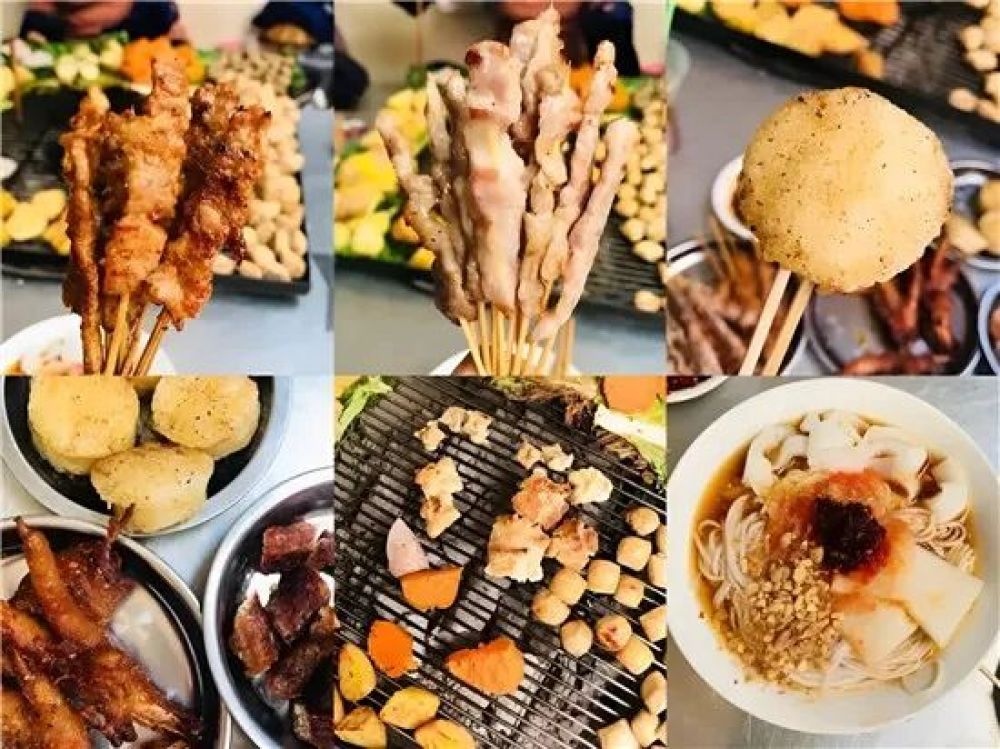 如米线、烧烤、糖粉小肉串等