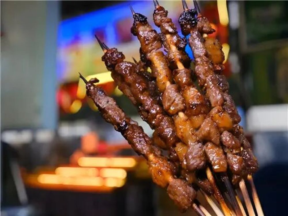 吃一把火车站商场的糖粉小肉串