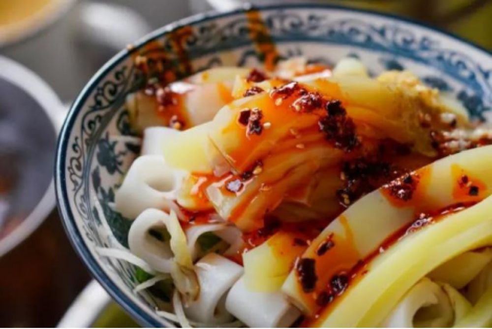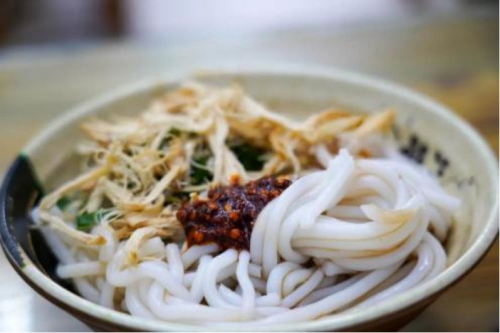 (2)凉鸡米线:米线爽滑,配上卤鸡丝、花生、辣椒油,酸甜开胃,是秋日解馋的不二之选。