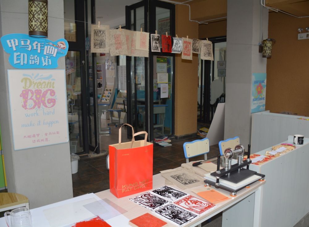 老师与学生共同完成年画拓印。(丽江融媒记者 吕坤钊 摄)