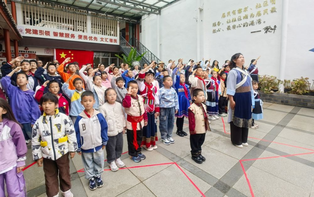 古城区西安街道文汇社区升旗仪式现场。(丽江融媒记者 侯玮 摄)