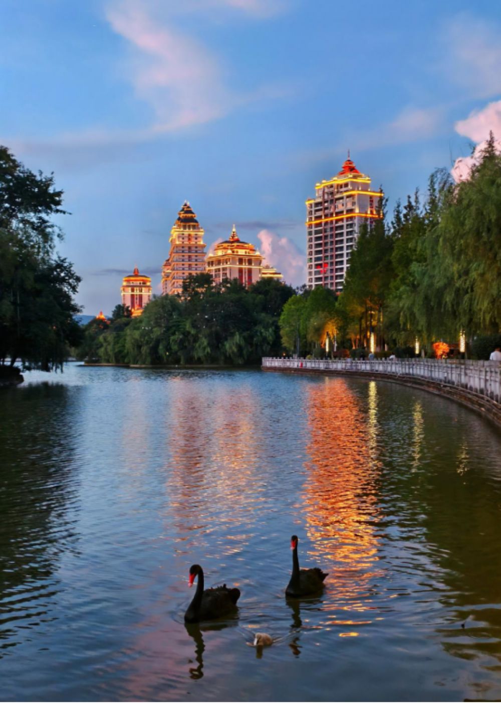 临沧的玉龙湖,是秋日的一抹温柔。黑天鹅翩跹游弋,偶有白鹭掠过湖面,定格成一幅灵动的水墨画。建议傍晚前往,夕阳为湖面镀上金晖,更易捕捉到群鸟归巢的震撼瞬间。