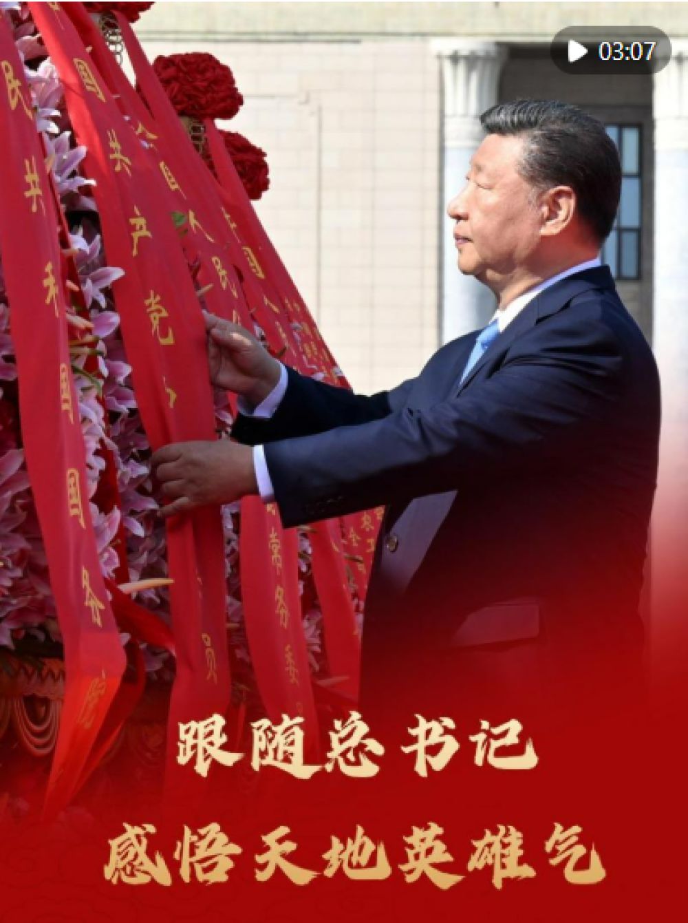 这些年来,总书记多次看望慰问抗战老战士、革命烈士家属,考察参观革命纪念馆、抗战纪念地。敬献花篮、倾心交谈、庄严授勋……每一个动作,每一项安排,都是将历史铭记于心的躬身践行,都是对英雄前辈的崇高敬意。