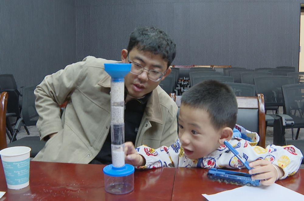 科技馆内,市民正认真进行水过滤对比实验。 (丽江融媒记者 张丽瑶 摄)