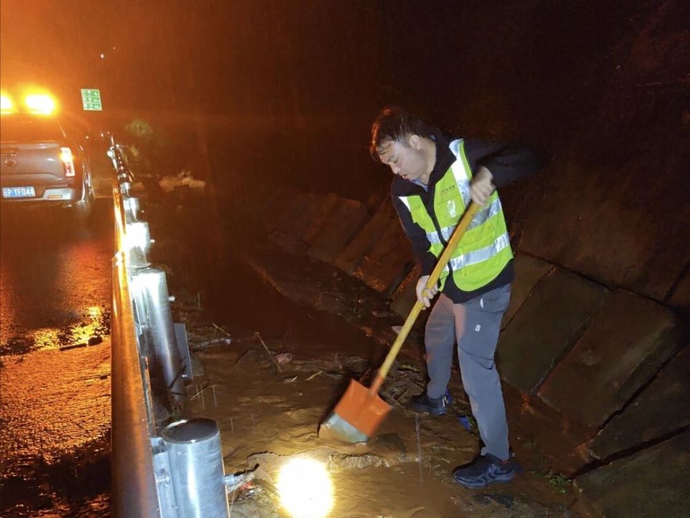 清晨、深夜,在车流间隙,华丽高速公路养护员们已经开始忙碌,检查路面、铲除淤泥等。(供图)