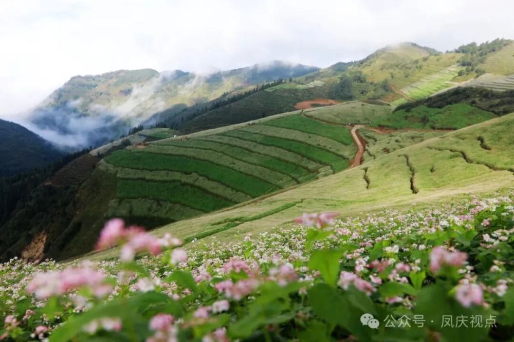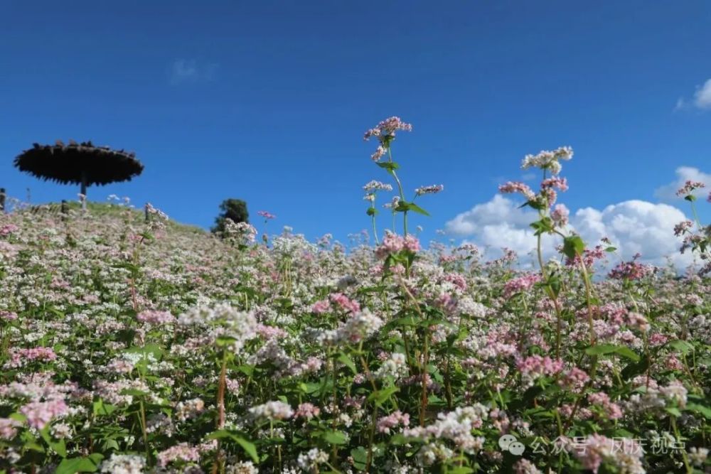 凤庆县勐佑镇中和村“云上花海”景区1800余亩荞麦花又迎来绽放季节,2200米海拔山巅上,千万株花穗摇曳,粉色、白色、玫红色的花穗晕染开来,铺就出一方柔软梦境。荞麦花香迎客来,县内外游客蜂拥而至,赏花、闻香、品荞麦美食。