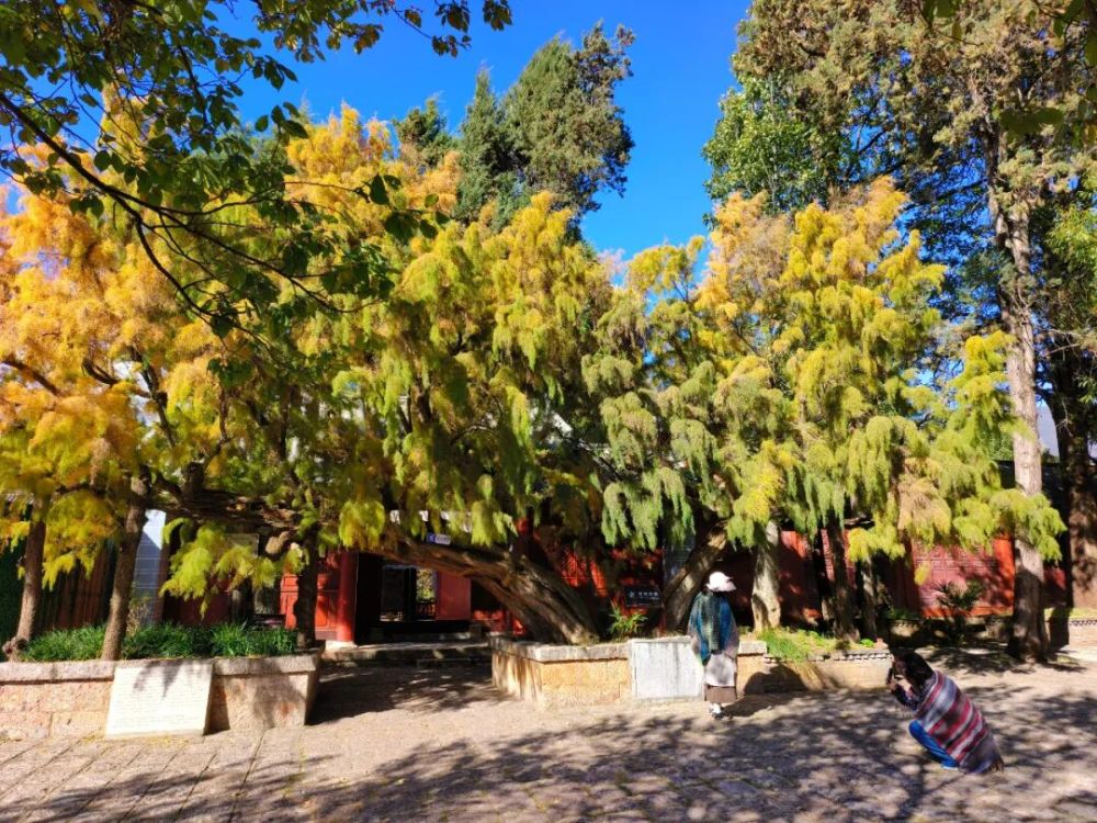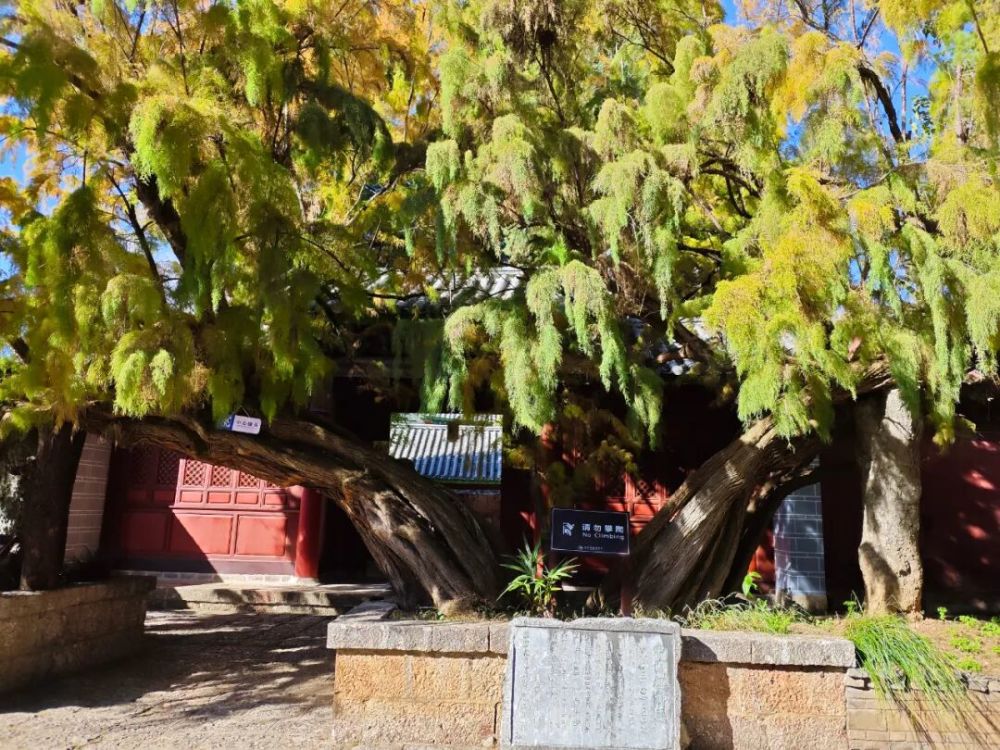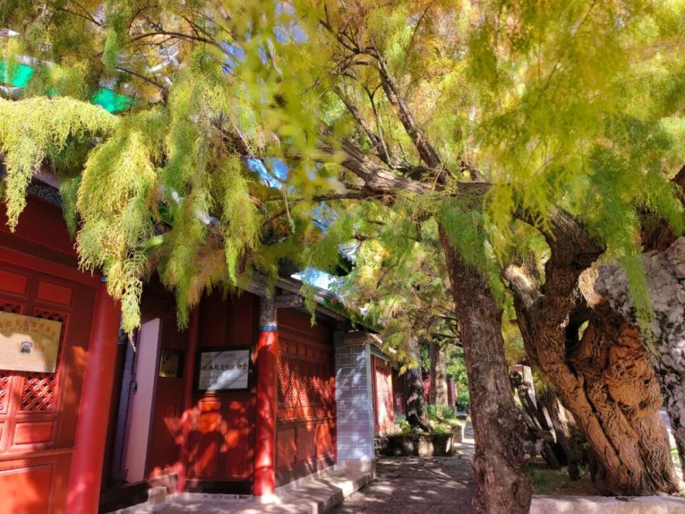 柽柳与大宝积宫琉璃殿明清古建筑群同期种植,共同构成了“活态历史景观”,直观展现纳西传统生态观,柽柳的形态(倒八字形)与建筑布局体现纳西族对自然的顺应与利用,形成“建筑-植物-壁画”三位一体的文化空间,既是自然与历史的双重见证,又是文化融合的生态载体。